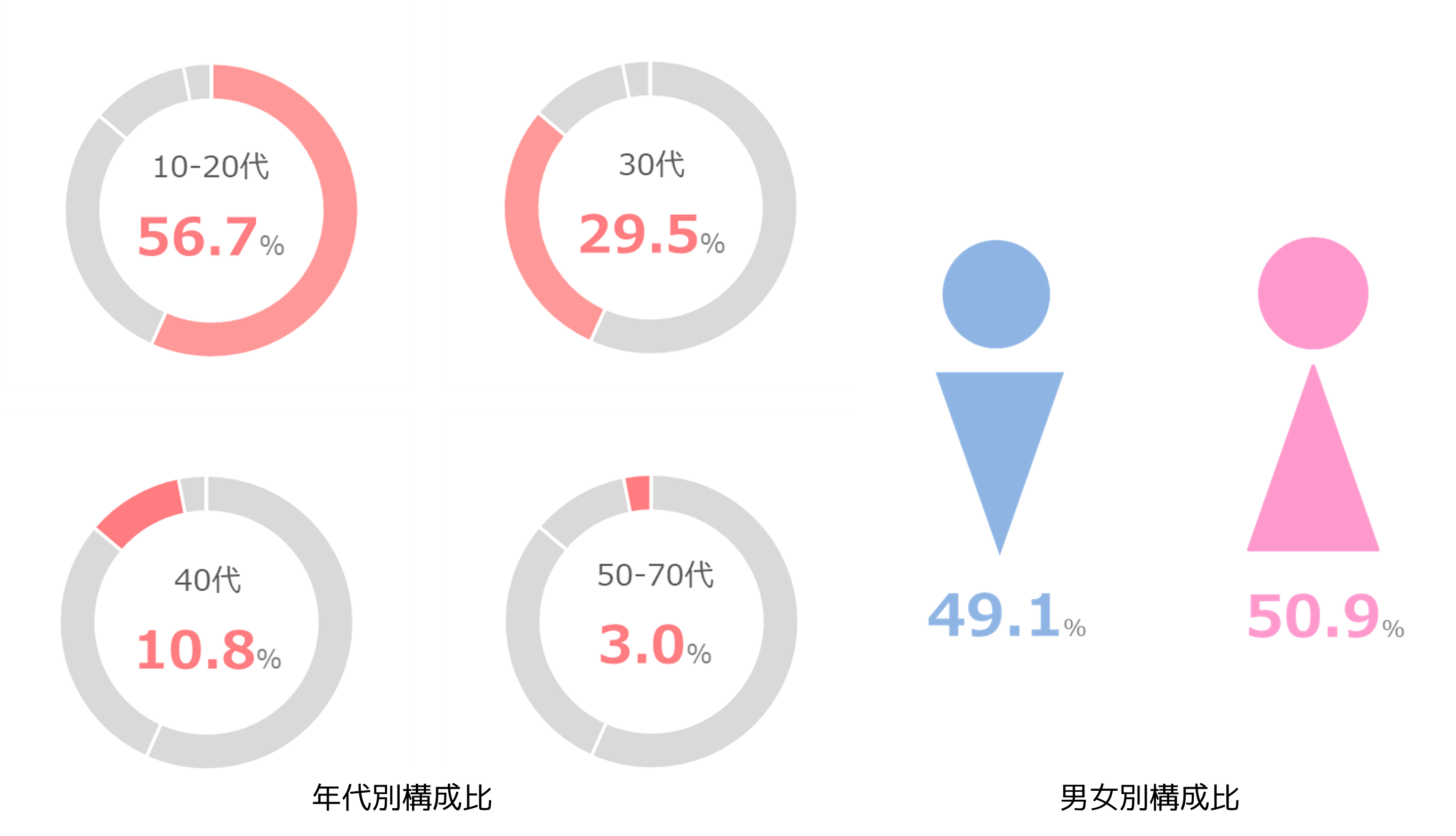 年代別構成比率と男女別構成比率(正社員・契約社員・アルバイト)